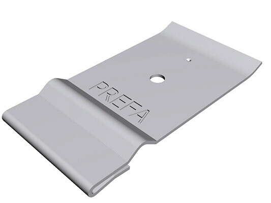 fixare indirectă, 2 cleme brevetate PREFA și cuie inelare PREFA per placă de acoperiș (adică 8 cleme brevetate PREFA și cuie inelare pe m²) |